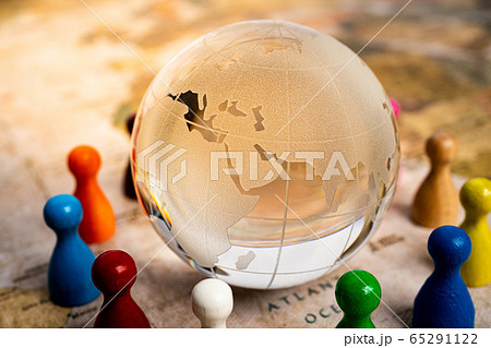 世界和平的形象玻璃地球儀和人民