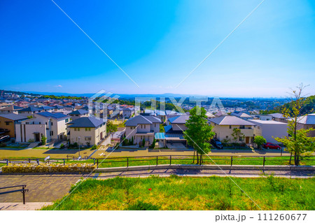[北海道旭川市]從山上看秋天的山丘十月陽光明媚