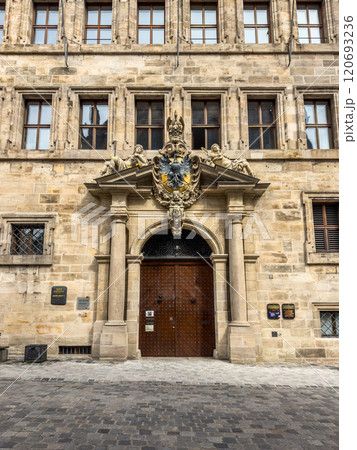 Old Medieval buildings on Pegnitz river bank in Old town Nuremberg city historical center, Middle Franconia region, Bavaria state, Germany