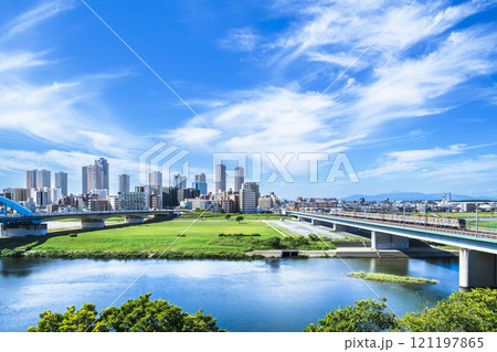 川崎/武藏小杉城市景觀 多摩河和塔樓公寓大樓[神奈川縣/川崎市]