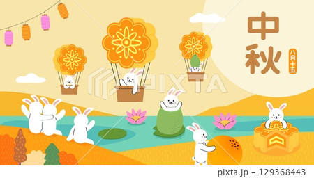 可愛的兔子乘坐月餅熱氣球慶祝中秋節