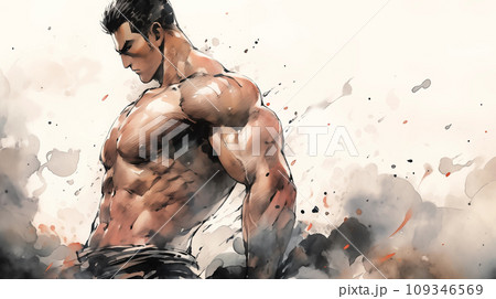 手绘水墨健身肌肉猛男插画