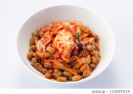 納豆的佈置“泡菜納豆”(大白菜泡菜淋上很小的納豆)。