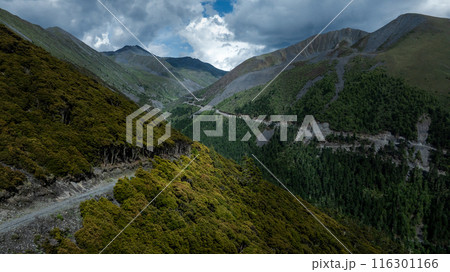 Aerial view of beautiful forest mountain landscape in tibet,China