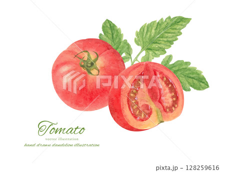 新鮮、成熟的西紅柿和樹葉的可愛而流行的插圖