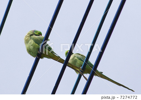 野生蠶眼角鸚鵡停在住宅區的電線上(Tsukinoiwa長尾小鸚鵡)
