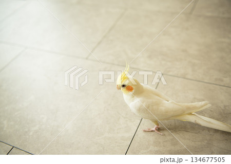 一隻玄鳳鸚鵡棲息在地板上