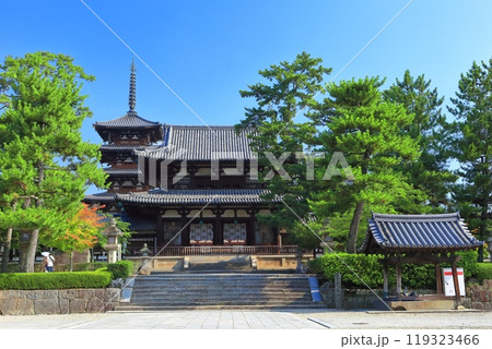 【奈良縣】晴天的法隆寺、五層寶塔和中門