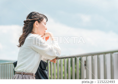 在屋頂上思考的女商人(換工作、退休、職業)