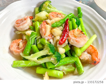 鹽炒蝦仁和蔬菜