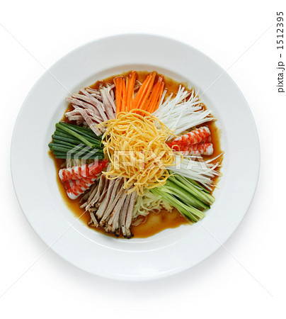 夏季供應的清涼中式冷麵,清爽的午餐,餐桌圖片