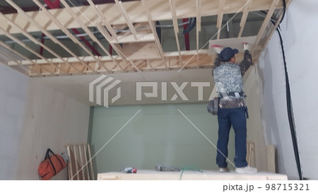 建築工地、中期、室內、木材、木匠、木箱、天花板工程、地基