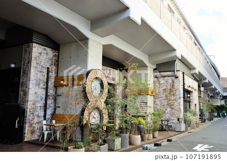 東京目黑區中目黑站附近的高級商店,夏日晴朗的天空