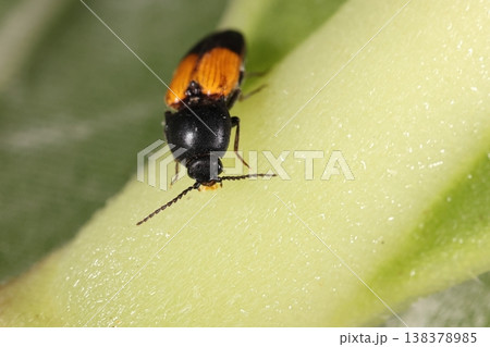 生物,昆蟲,葉甲蟲,大小 7 至 8 毫米。橙色有黑點,美麗的葉甲蟲,但葫蘆科害蟲