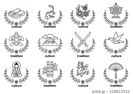 set of illustrations in the concept of Japanese culture in a line style