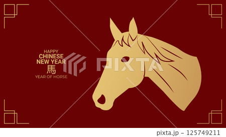 Year horse Happy chinese new year 2026...Silhouette gold horse on red background Banner. Vector...
