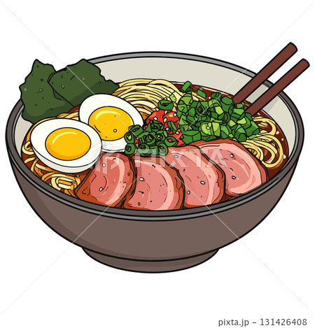 熱氣騰騰的日式味噌醬油豬骨拉麵,豬肉和雞蛋的搭配,散發著和諧的香味