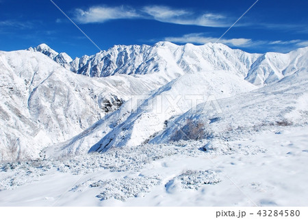 [長野縣]冬天的神高地北阿爾卑斯山和白霜樹
