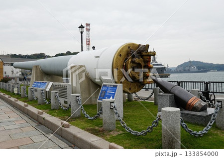 <神奈川縣>世界三大紀念艦“三ika”的前炮在橫須賀基地附近的海岸展出