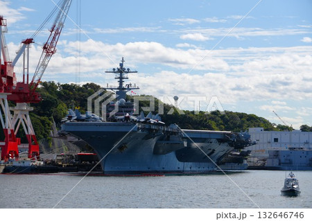 停泊在橫須賀港的隱形艦和宙斯盾艦