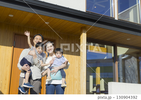 站在房子前門的全家福