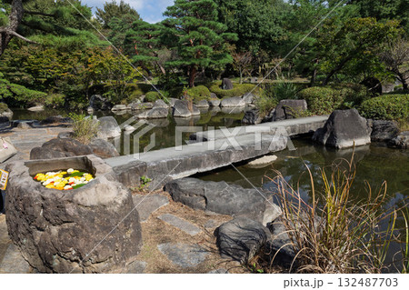 岡山後樂園的夢幻花園,整體上可一覽城堡