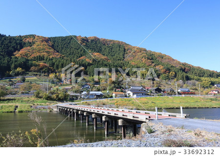 橫跨久慈川清澈河水的美麗木橋,橋欄桿低矮…[平山橋]