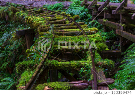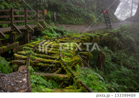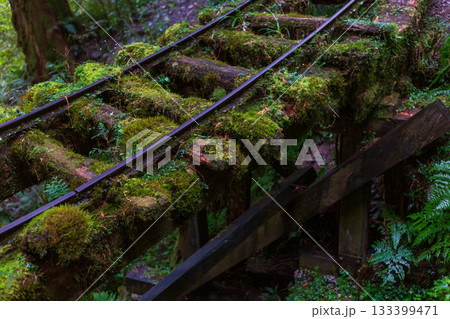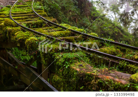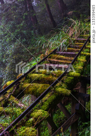 宜蘭見晴古道中被苔蘚覆蓋的荒廢運材鐵道