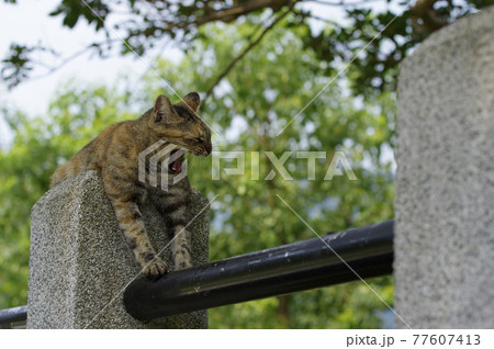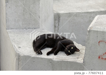 東北角海岸黃昏的天然絕景與休息的貓搭成一體