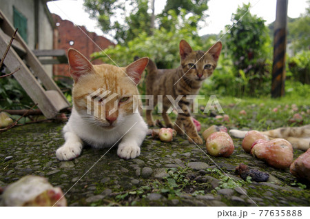 蓮霧樹下追蝴蝶的好奇小貓咪