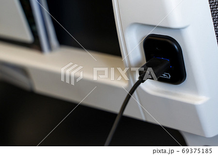 Convenience meets travel with USB ports at airplane seats, providing a practical solution for charging electronic devices on the go.