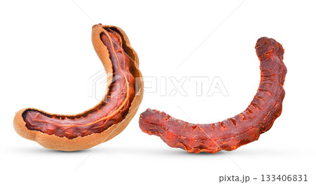 Tamarind fruit isolated on white background, Top view. Flat lay. Set or collection