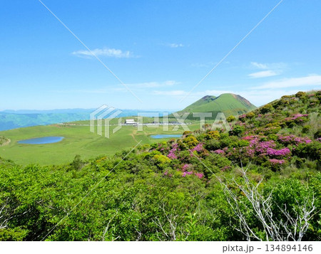 初夏的惠伯希山、草千里濱海灘和岸島山(熊本縣阿蘇市)
