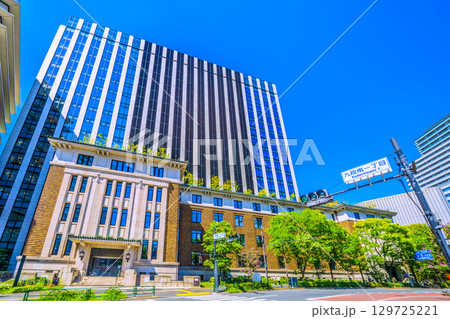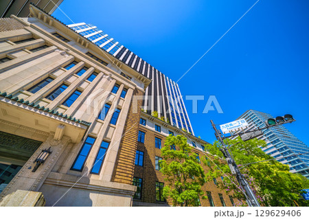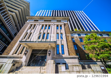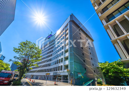 日本東京的街景。酷熱…灼熱的陽光…千代田區政府和其他建築物的景色。邁向新時代 = 8月15日