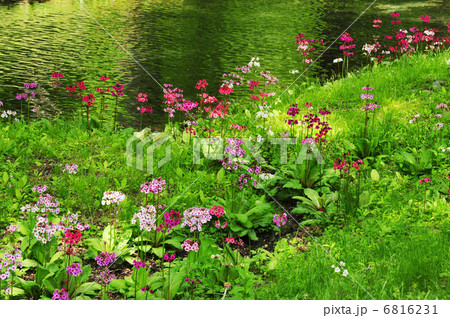 在中禪寺湖畔的千手濱盛開的日本報春花