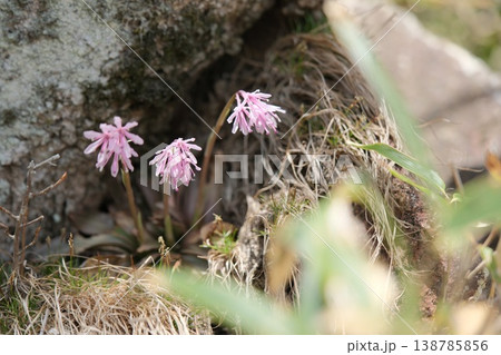 岩岸上盛開的日本報春花