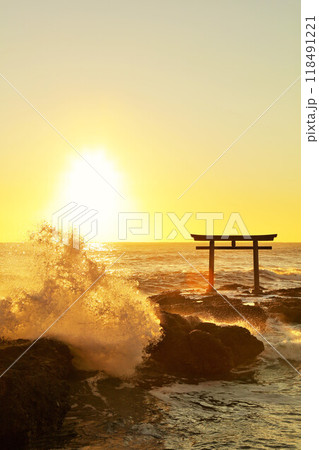 大洗磯崎神社,茨城縣鳥居門和浪花
