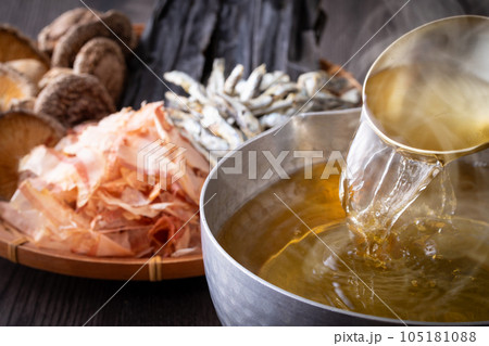 用海帶、乾香菇和鰹魚寫