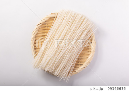 白色背景中的海苔鹽漬蕎麥麵鳥瞰圖