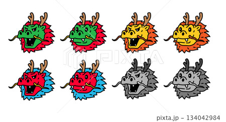 chinese dragon vector new year cartoon character mascot face head smiling icon gold logo doodle symbol illustration design isolated