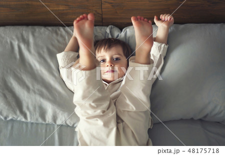 Little boy lying on a bed