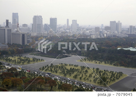 日本的東京都市風景我想看到在藍天蔓延的故宮前的大手町和丸之內等高層建築物