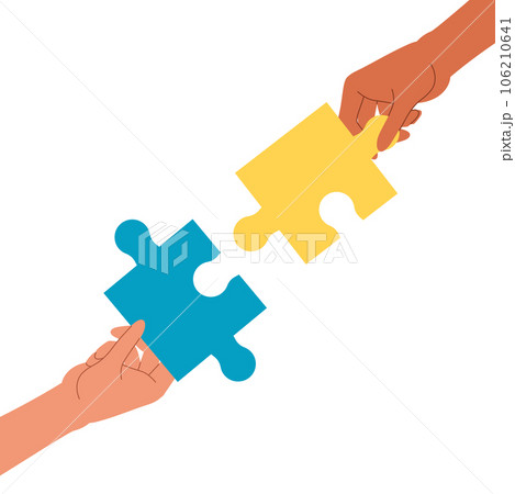 多隻手拿著拼圖