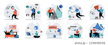 Gamification of achievements and users engagement banner vector illustration.