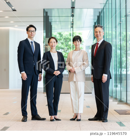 簡單的向量插圖,由四名中年男子手持智慧型手機和平板電腦組成