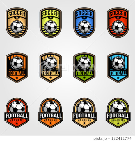 一套方便實用的第一名到第三名徽章和獎牌,帶有足球圖示。