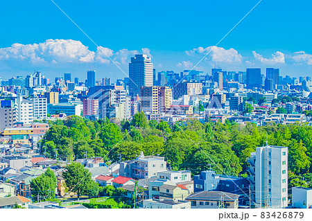 從六本木地區四谷池袋地區看的東京風景2019春天新鮮的綠的藍天一谷