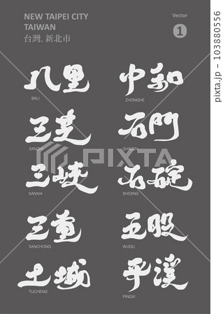 台灣新北市行政區(一),特色手寫字母,漸變標題文字素材。