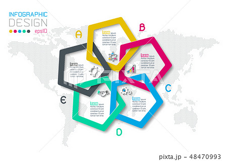 Infographic Venn diagram chart pentagon template 5 steps for business start up presentation vector illustration.