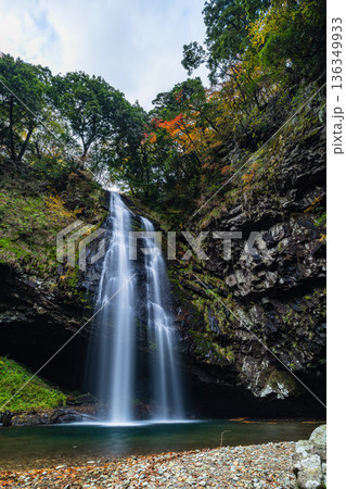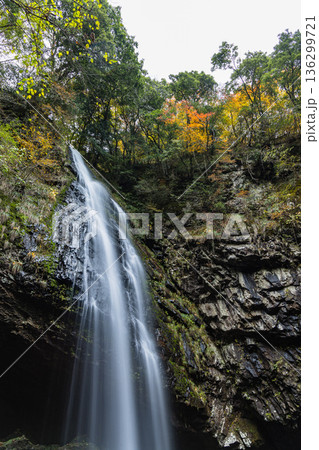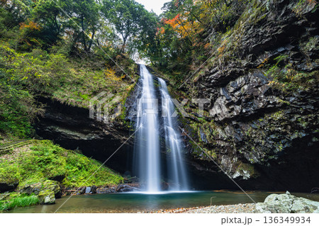 日本島根縣雲南市加溪合町的龍鬚瀑布和秋葉